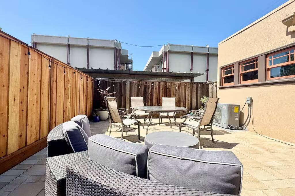 Our comfy 2-bedroom home pairs mid-century modern style with everyday ease; free on-site parking included. Inside you’ll find a fully stocked kitchen, smart TV, blazing-fast mesh Wi-Fi, and a dedicated laundry room. Sleep soundly on a king in the primary and a queen in the guest room; both with soft bamboo pillows; and use the genuine-leather sleeper sofa for extra guests. Step outside to a large, private, and quiet gated yard with a cozy patio and outdoor seating; it’s easy to forget you’re downtown. Getting around is a breeze: we’re very close to I-280 (and near Hwy 87/101), so driving anywhere is simple. The home is professionally cleaned before each stay and stocked with fresh linens, toiletries, and essentials so you can settle in and feel at home. Enjoy self check-in via lockbox. Please confirm your reservation and check-in instructions in advance, and feel free to reach out with any questions—especially if you're checking in late, as we may be asleep. For your safety, the home is equipped with 24/7 exterior video surveillance. Be sure to list the correct number of guests in your reservation and notify us through the Airbnb app if any changes arise.