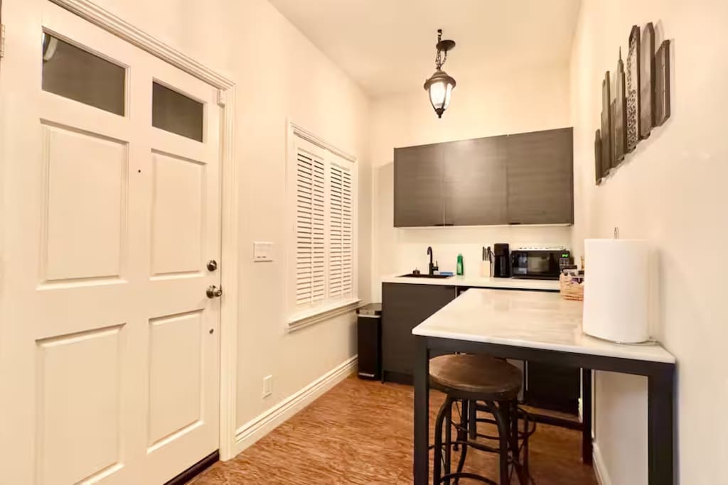 Our private king guest suite includes a fully stocked kitchenette and mid-century modern furnishings, plus AC/Heater (controlled by the main house). Enjoy a luxurious bathroom and a smart 65" TV. Stay connected with fast Gigabit fiber mesh network Wi-Fi (>1 Gbps). Sleep soundly on a comfortable memory-foam queen bed with a bamboo pillow, etc. The house is professionally cleaned before each stay and stocked with clean linens, toiletries, and everything you’ll need for a comfortable stay. You’ll self check in via lockbox. Please confirm your reservation, review the check-in instructions, and send any questions beforehand, especially if you expect a very late arrival, as we may be asleep. The property is equipped with video surveillance 24/7 around the perimeters of the house. Make sure to put down the correct number of guest who will be staying with you in the reservation and informed us through Airbnb app if there are any changes in advanced.