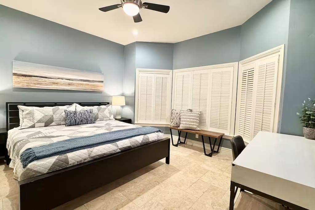 Unwind in a private king suite with a spa-like bathroom, business-class internet and whole-home Wi-Fi 6. Centrally set in Silicon Valley with fast access to I-280, Hwy 87 and 101. Reach Diridon/Caltrain, SJC, the Convention Center, SAP Center, Levi’s Stadium, SJSU and downtown San Jose in about 10 minutes. Have questions or special requests? We’re close by and happy to help so your stay is effortless.