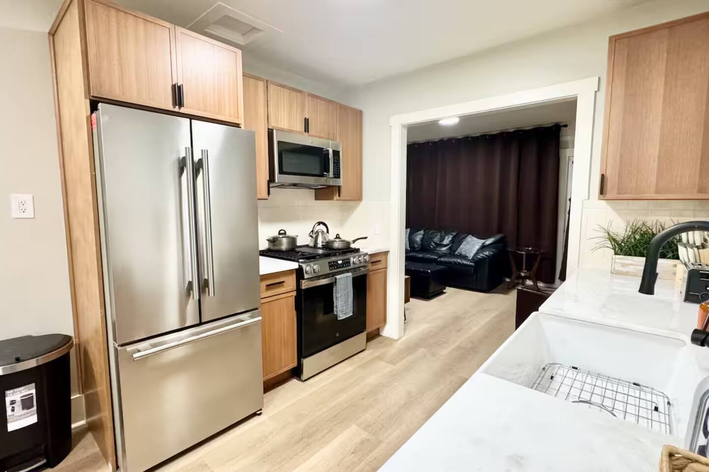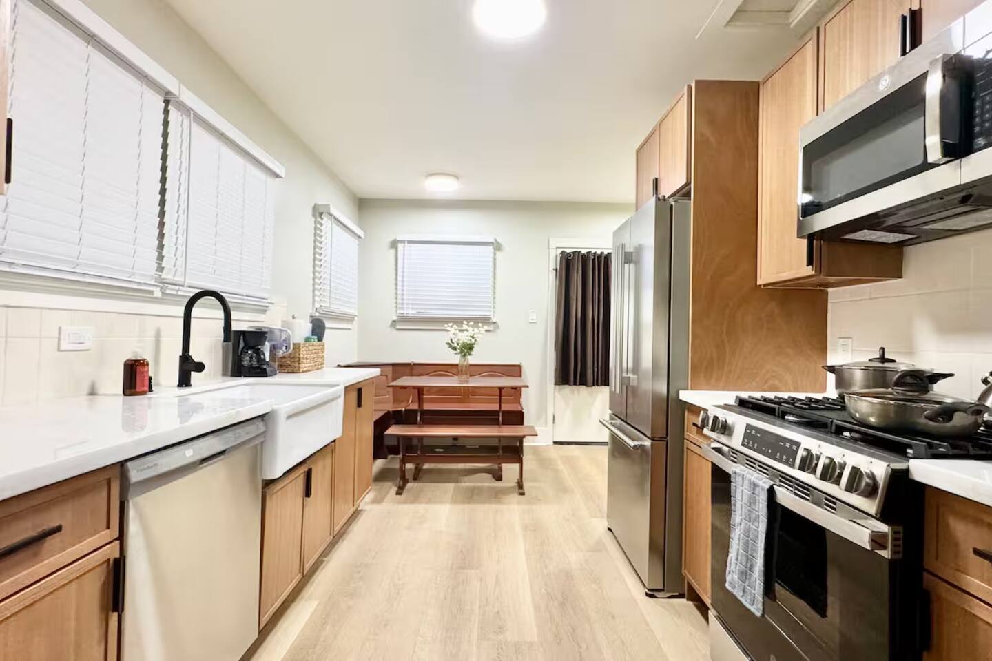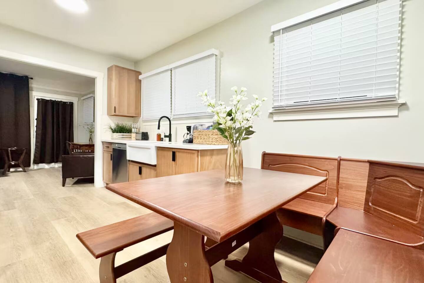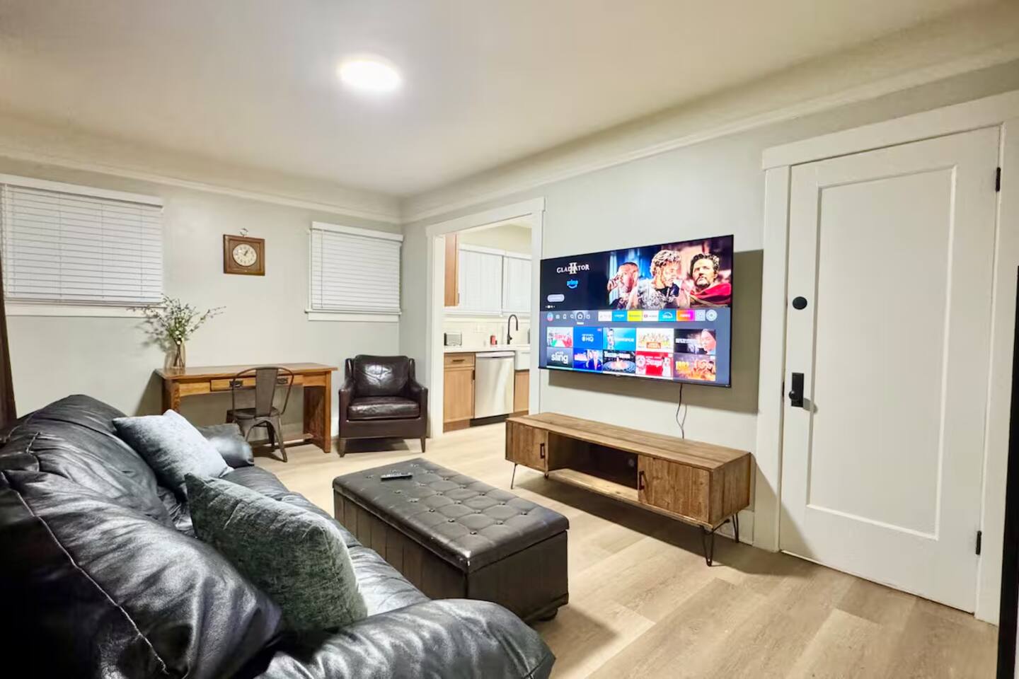 Our comfy 2-bedroom home pairs mid-century modern style with everyday ease; free on-site parking included. Inside you’ll find a fully stocked kitchen, smart TV, blazing-fast mesh Wi-Fi, and a dedicated laundry room. Sleep soundly on a king in the primary and a queen in the guest room; both with soft bamboo pillows; and use the genuine-leather sleeper sofa for extra guests. Step outside to a large, private, and quiet gated yard with a cozy patio and outdoor seating; it’s easy to forget you’re downtown. Getting around is a breeze: we’re very close to I-280 (and near Hwy 87/101), so driving anywhere is simple. The home is professionally cleaned before each stay and stocked with fresh linens, toiletries, and essentials so you can settle in and feel at home. Enjoy self check-in via lockbox. Please confirm your reservation and check-in instructions in advance, and feel free to reach out with any questions—especially if you're checking in late, as we may be asleep. For your safety, the home is equipped with 24/7 exterior video surveillance. Be sure to list the correct number of guests in your reservation and notify us through the Airbnb app if any changes arise.