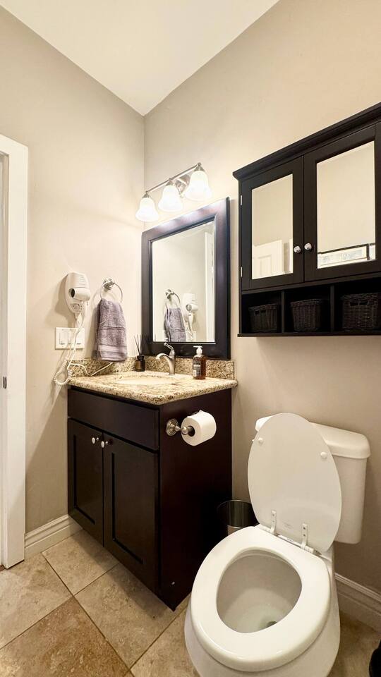 Unwind in a private king suite with a spa-like bathroom, business-class internet and whole-home Wi-Fi 6. Centrally set in Silicon Valley with fast access to I-280, Hwy 87 and 101. Reach Diridon/Caltrain, SJC, the Convention Center, SAP Center, Levi’s Stadium, SJSU and downtown San Jose in about 10 minutes. Have questions or special requests? We’re close by and happy to help so your stay is effortless.
